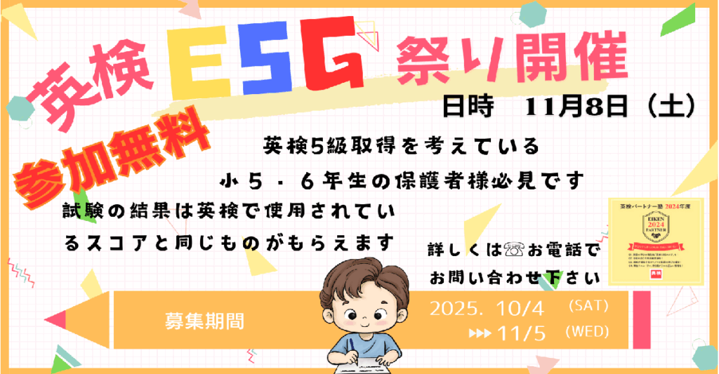 今年度より当塾は英語検定協会から英検パートナー塾として認定されました。地域の英語技能レベルの向上により努めてまいります。